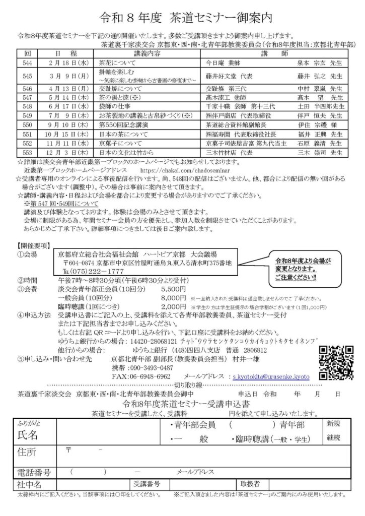茶道裏千家淡交会青年部様からのご依頼で、茶道セミナーにて漆に関する講義を担当させていただきます。